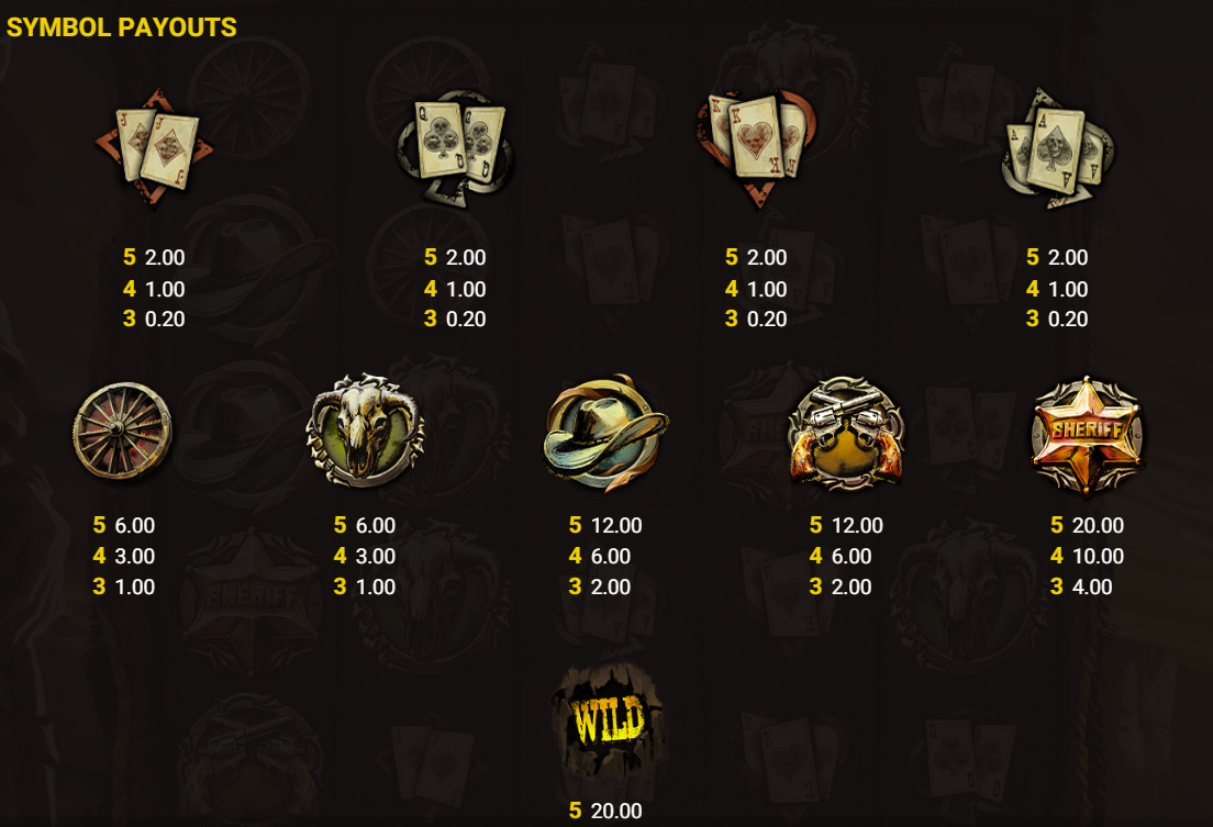 - Duel Positioning System: Two gunfighter characters stand on either side of the reels. Their positions change with each spin, determining where wild symbols will be placed on the grid.